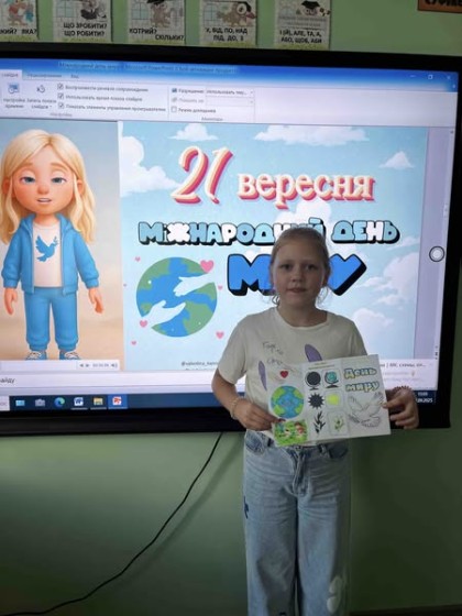 Це не просто дата в календарі — це нагадування, що мир починається з кожного з нас. З нагоди відзначення Дня Миру, вихователь ГПД І.А.Кукса провела виховну годину із учнями 4А та 4В класів. Діти переглянули презентацію, визначили, що означає слово "мир", дізналися , які символи миру та зробили буклет!